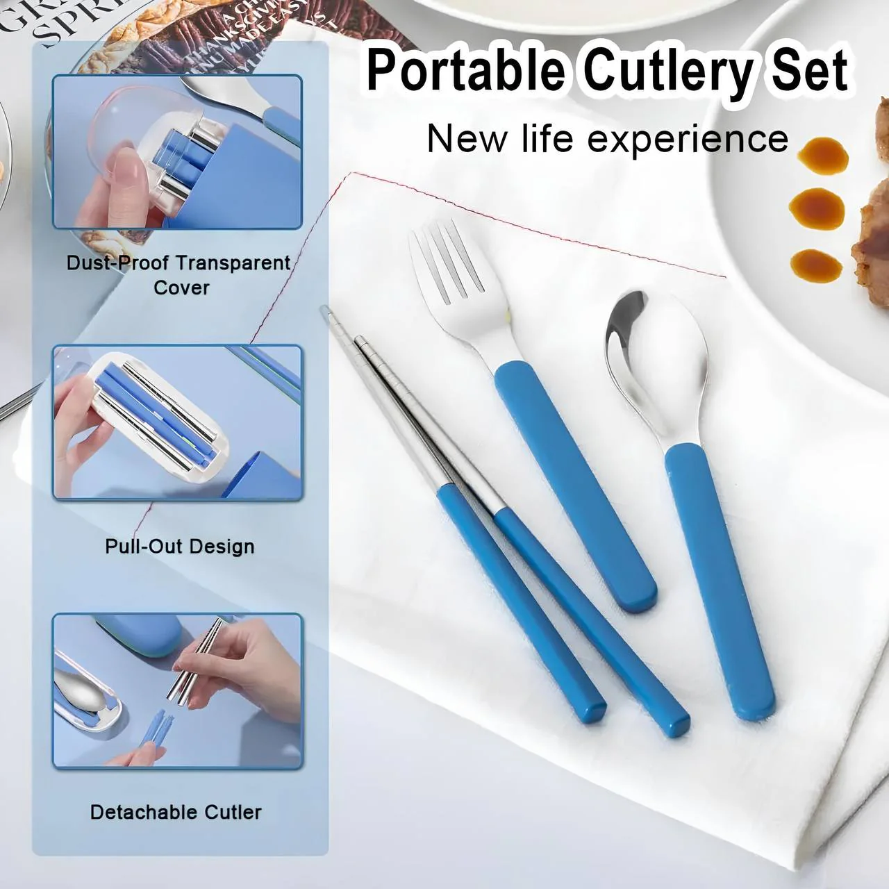• Includes a fork, spoon, pair of chopsticks, and a portable case.