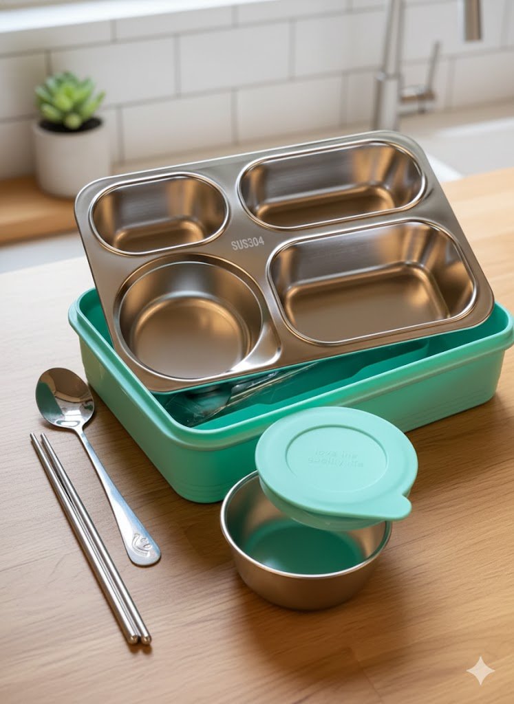 Ultimate Bento Box -4 Grid -Stainless Steel – 100% Leak resistant